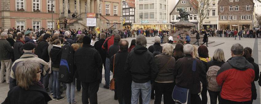 Hildesheim: 700 Menschen am Huckup, die Mahnwachen gingen in den folgenden Wochen weiter.
