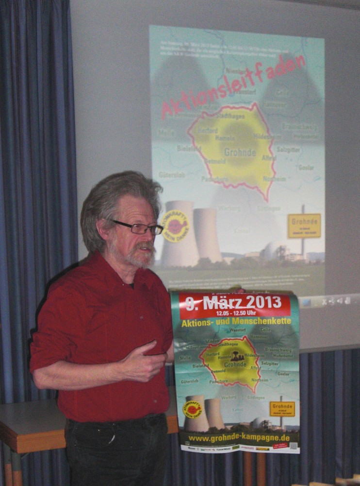 18.1.2013 Göttingen. Northeim. Uslar. Welche Auswirkungen hätte ein Atomunfall im AKW Grohnde bei Hameln auf Südniedersachsen? Das wollen Atomkraftgegner zusammen mit vielen Menschen aus Vereinen, Kirchengemeinden, Gewerkschaften und Einzelpersonen am 9. März anlässlich des 2. Fukushima-Jahrestages demonstrieren. Nach den ersten erfolgreichen Treffen in Göttingen und Northeim nimmt die Aktion nun langsam Gestalt an.