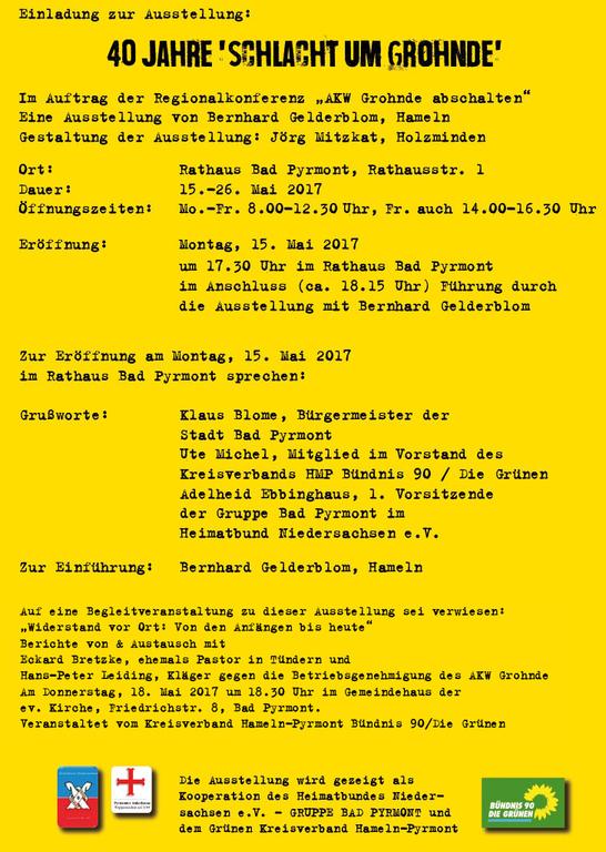 16.00 Uhr Eröffnung der Ausstellung 40 Jahre "Schlacht um Grohnde"