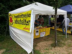 Für den parallel ab 11 Uhr stattfindenden "Markt der Möglichkeiten" hatte sich der Rechtshilfefonds zusammen mit dem Blomberger Arbeitskreis Atomausstieg schon frühzeitig einen Standplatz im Schlosspark gesichert.