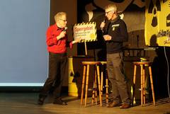 Zum Schluss wurde in einer Frage-Antwort-Runde auf der Bühne über die aktuelle Grohnde-Klage informiert, die seit Oktober 2015 beim OVG Lüneburg liegt, aber aktuell immer noch nicht terminiert ist. Es moderierte Peter Dickel. Sowohl die Kläger (Hans-Peter Leiding aus Grohnde und Mechtild Steinhauer von der Kommune Buchhagen) als auch Vertreter des Rechtshilfe-Vorstands (Karsten Schmeißner) kamen dabei zu Wort und konnten ihre Motivation für die Klage und deren Unterstützung deutlich machen.