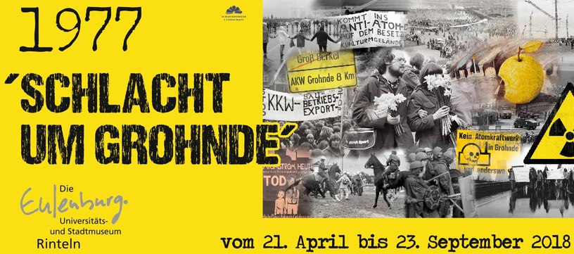 Ähnlich angelegt ist das Geschichtsprojekt „40 Jahre Schlacht um Grohnde“, das die Regionalkonferenz im Juli 2016 angeregt hat. Der Hamelner Historiker Bernhard Gelderblom stellte dazu eine Ausstellung zusammen, die er später und erweitert als Buch herausgab. Die Austellung war bisher in Hameln, Göttingen, BadPyrmont und dem Polizeimuseum Nienburg zu sehen, derzeit und noch bis zum 23. September im Museum Eulenburg in Rinteln [mehr Infos]. Im Rahmen des Projektes fanden bis heute zahlreiche Veranstaltungen, Zeitzeugengespräche, eine Diskussion der Polizeigewerkschaft in Hameln oder kirchliche Veranstaltungen statt. Davon angeregt wurden universitäre Projekte. StudentInnen der Uni Hannover, die qualifizierte Befragungen von Zeitzeugen durchgeführt haben, stellen die Ergebnisse der Befragungen am kommenden Freitag, dem 04. Mai von 18.00 – 20.00 Uhr im Cafe täglich in Hameln vor und zur Diskussion. [mehr Infos]